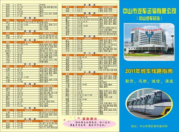中山車站2011年班車線路指南----[2011-06-19] | 中山——宜賓----[2011-07-27] | 中山——肇慶----[2011-07-27] | 中山——南豐----[2011-07-27] | 中山——融水----[2011-07-27] |